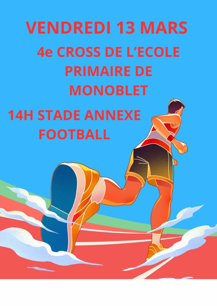 Le vendredi 13 mars dès 14h : autour de l’école et des espaces sportifs, 4e Cross de l’école de l’école primaire de Monoblet, avec l’association d’athlétisme ACNA ! Rdv au boulodrome pour soutenir nos écoliers !