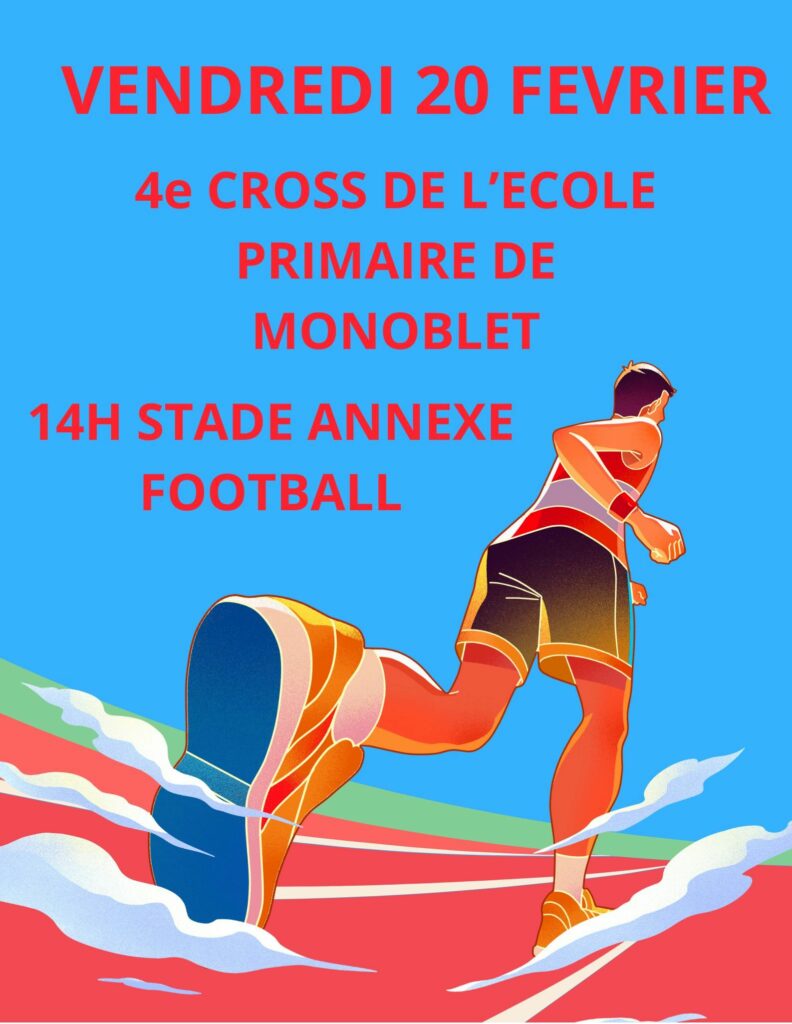 Le vendredi 20 février dès 14h : autour de l’école et des espaces sportifs, 4e Cross de l’école de l’école primaire de Monoblet, avec l’association d’athlétisme ACNA ! Rdv au boulodrome pour soutenir nos écoliers !
