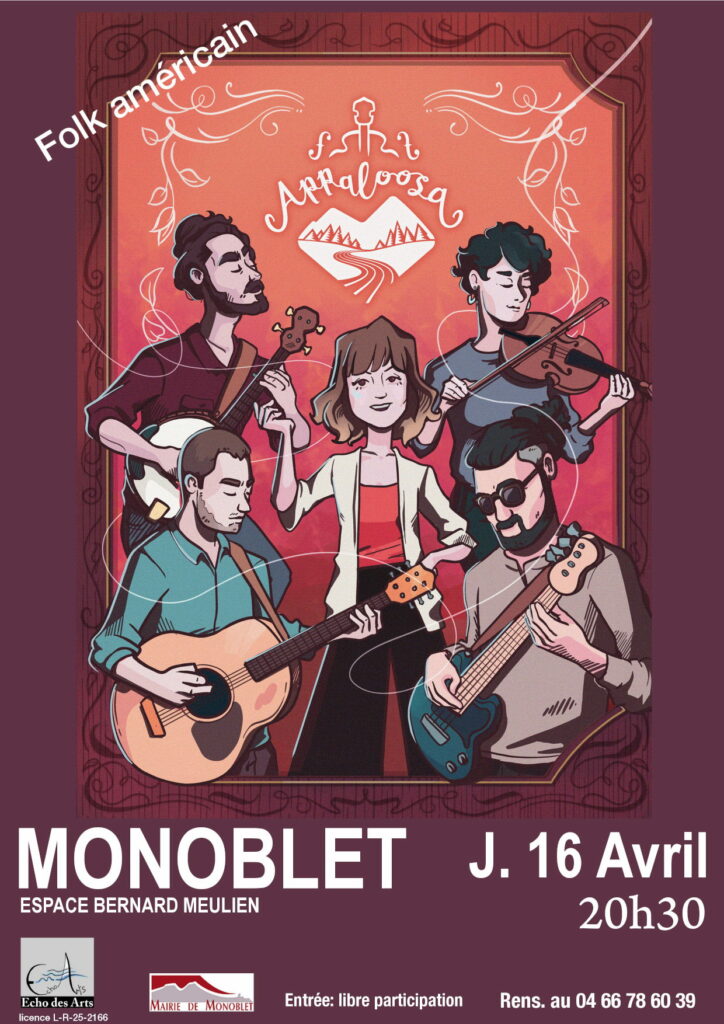 Ce jeudi 16 avril à 20h30, salle culturelle, l’association Écho des Arts acceuille le groupe Appaloosa. Il dessine un chemin qui va du bluegrass traditionnel aux tubes de Fleetwood Mac. Leur route qui fait dialoguer violon, banjo et mandoline, embarqués dans des rythmes fous est guidée par une voix féminine entourée de chœurs. Le groupe déploie une énergie contagieuse en réarrangeant des tubes pop d’hier et d’aujourd’hui dans des sonorités bluegrass, tout en proposant des moments suspendus de musique traditionnelle et de chansons folk. Enracinée dans des couleurs chaudes et des sons boisés, la musique d’Appaloosa est une invitation à la redécouverte de grands classiques pop et une plongée vive et entraînante dans le répertoire folk américain.